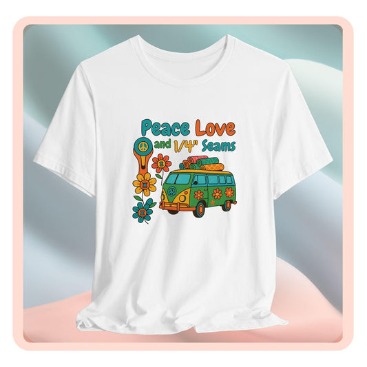 Peace, Love & 1/4" Seams Quilting T-Shirt – Groovy Retro Quilter Tee