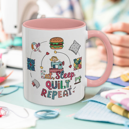 Eat, Sleep, Quilt, Repeat - Quilter's Routine Ceramic Mug