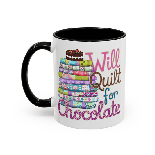 Will Quilt for Chocolate – Funny Quilting Ceramic Mug for Sweet-Loving Stitchers