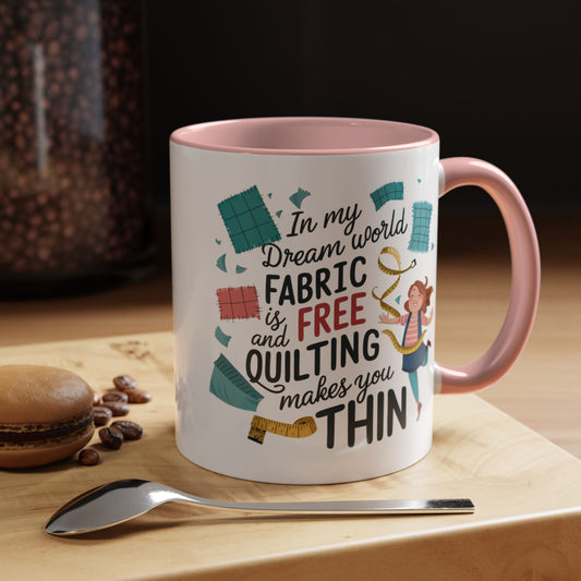 Fabric is Free and Quilting Makes You Thin - Quilters Dream World Ceramic Mug