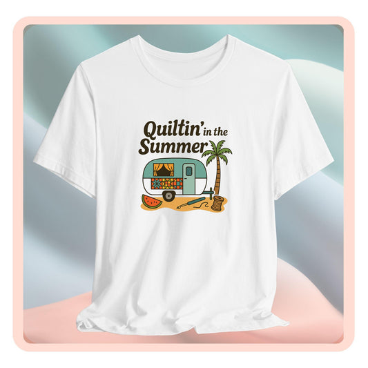 Quiltin’ in the Summer T-Shirt – Funny Quilting Camper Tee for Summer Stitchers