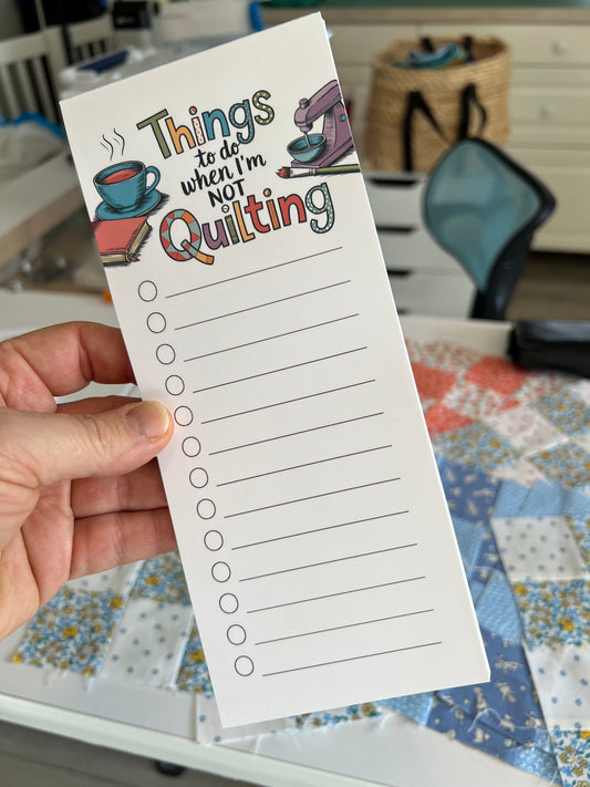 🧵 Quilters, get ready to stay organized in style! Our exclusive collection of quilting-themed notepads is designed by quilters, for quilters—with a touch of humor, creativity, and practicality. Whether you’re tracking UFOs (Unfinished Objects), planning your next masterpiece, or just making a to-do list (that may or may not get ignored in favor of quilting), we’ve got the perfect notepad for you!