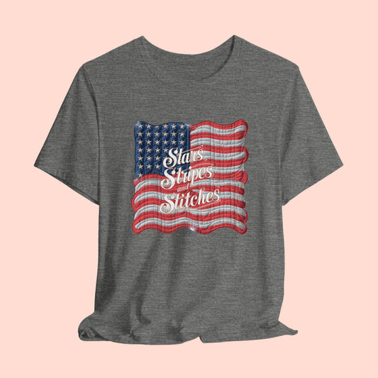 Stars Stripes and Stitches - Patriotic Quilter T-Shirt - Funny Quit...