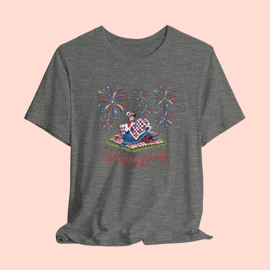 Stitching Liberty - Freedom Lover Quilter T-Shirt - Funny Quilting T...