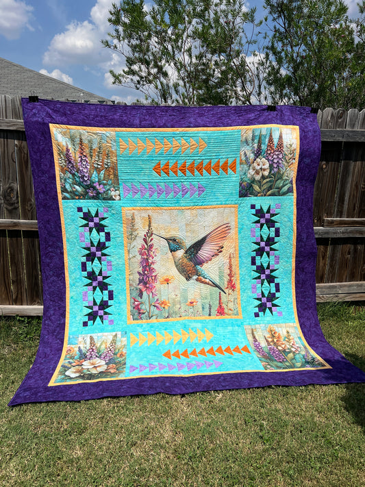 Hummingbird Garden Quilt Panel – Vibrant Floral & Bird Design | 100% Cotton (36" x 42")