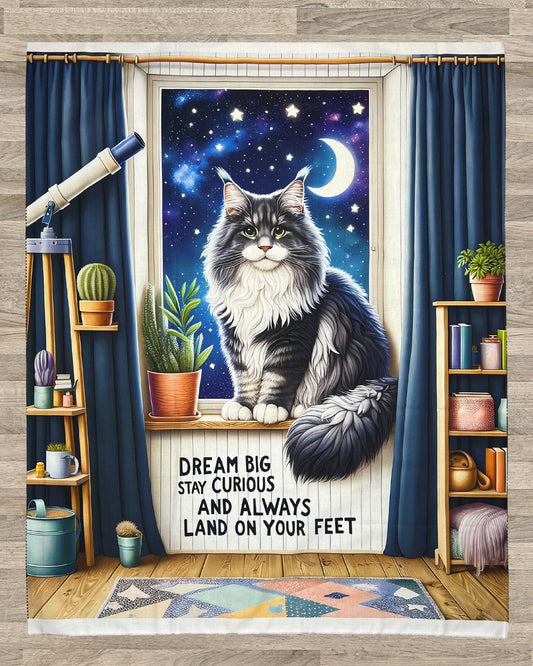 Dream Big Cat Quilt Panel – Maine Coon's Delightful Fabric Panel with Pattern
