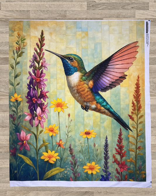 Hummingbird Garden Quilt Panel – Vibrant Floral & Bird Design | 100% Cotton (36" x 42")