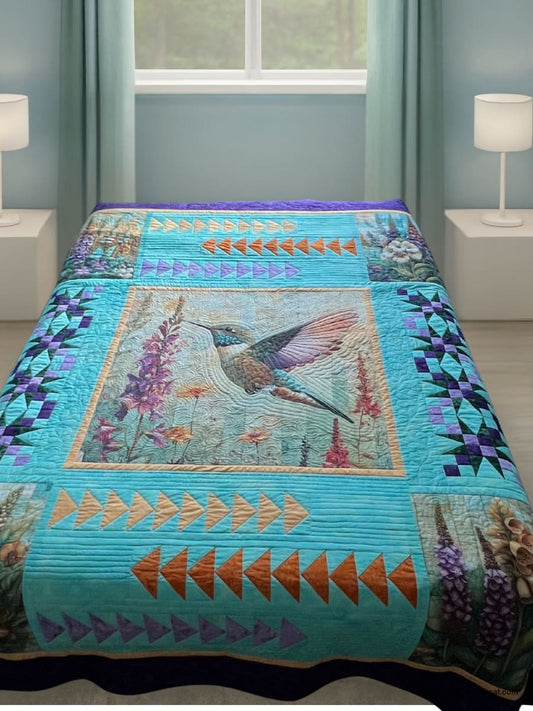 Hummingbird Garden Quilt Panel – Vibrant Floral & Bird Design | 100% Cotton (36" x 42")