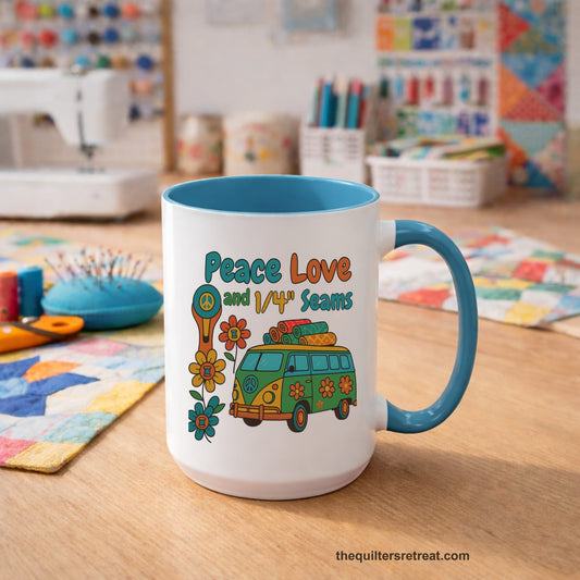 Peace Love and 1/4" Seams Accent Ceramic Mug