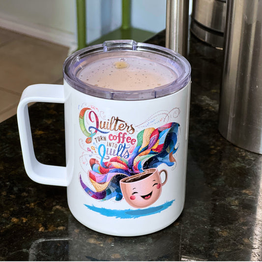 Quilters Turn Coffee Into Quilts - Funny Quilter's Insulated Mug