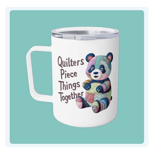Quilters Piece Things Together - Patchwork Panda Insulated Mug