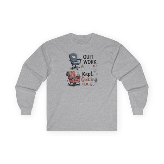 Quit Work Kept Quilting Long Sleeve Shirt | Funny Retirement Quilter Tee