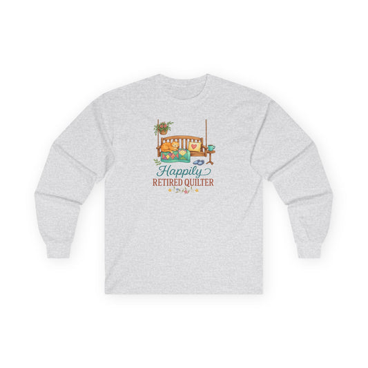 Happily Retired Quilter Long Sleeve Shirt | Cozy Quilting Retirement Tee
