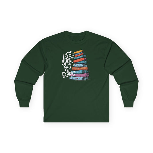Life Is Short, Buy the Fabric Long-Sleeve Tee – Quilting Fun