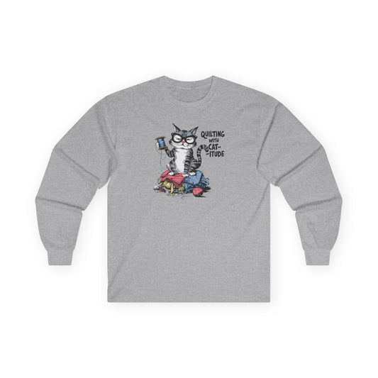 Quilting with Cat-itude Long-Sleeve Tee – Funny Quilting Cat Shirt