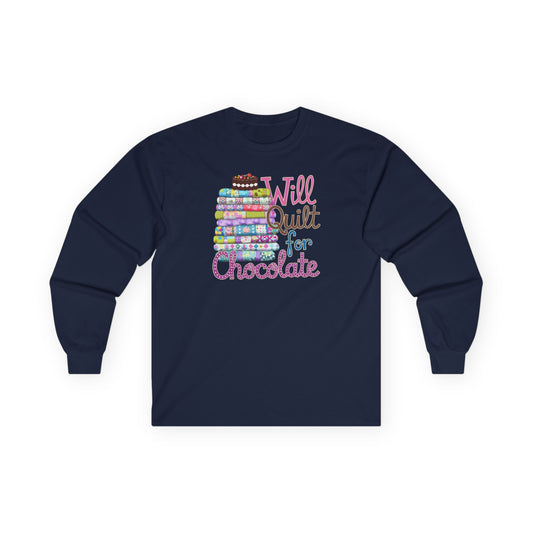 Will Quilt for Chocolate Long-Sleeve Tee – Sweet Quilter Style