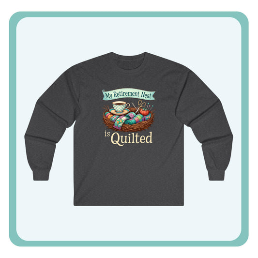 My Retirement Nest is Quilted Long Sleeve Shirt | Quilter’s Retirement Gift Tee
