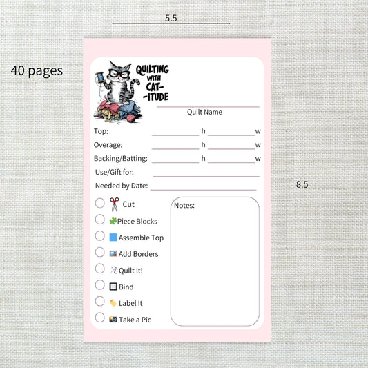 Handmade Quilting Project Planner Notepad – "Quilting with Cat-itude" - Fun Quilt Tracker for Quilters (Personalization available)