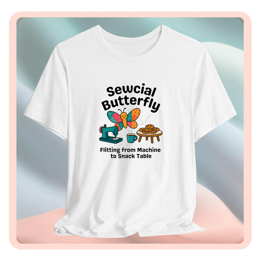 Sewcial Butterfly Quilting T-Shirt – Snack Table Hopper Tee for Quilters