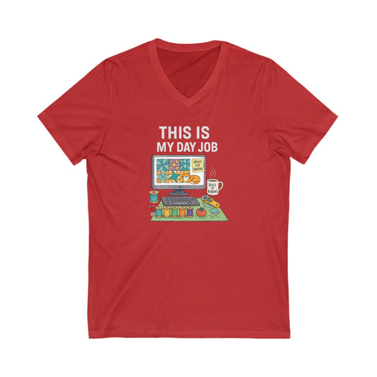 This Is My Day Job V-Neck T-Shirt – Funny Quilting Tee for Full-Time Stitchers