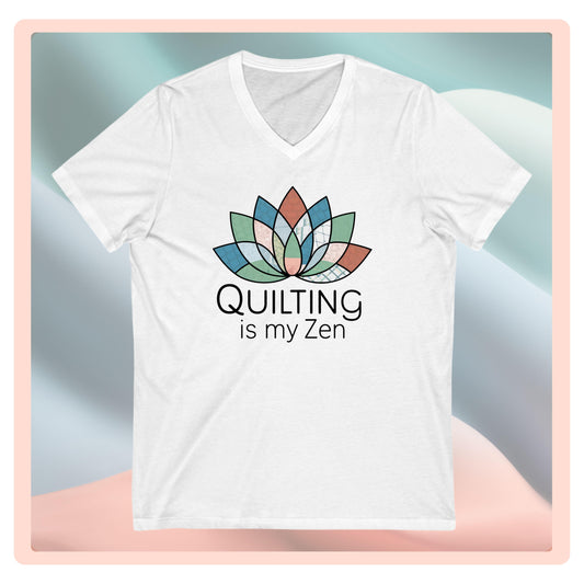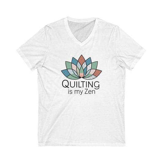Quilting Is My Zen V-Neck T-Shirt – Mindful Quilting Tee for Calm Stitchers
