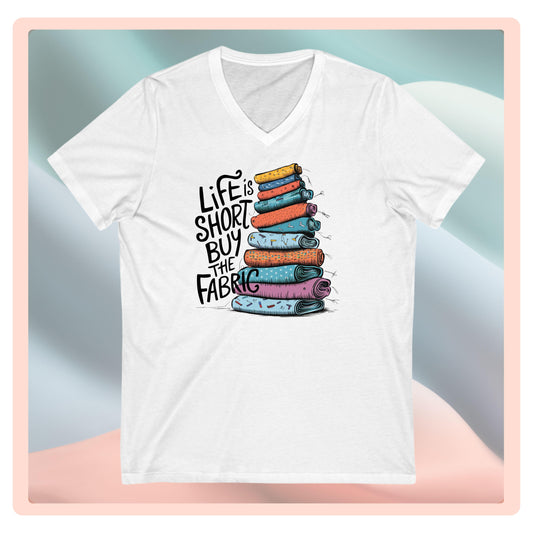 Life Is Short, Buy the Fabric V-Neck T-Shirt – Funny Quilting Tee for Fabric Lovers