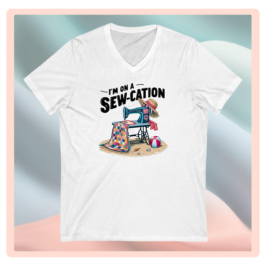 I’m On a Sew-cation V-Neck T-Shirt – Funny Summer Quilting Tee for Sewing Retreats & Vacays