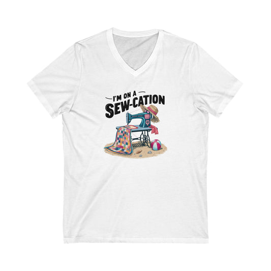 I’m On a Sew-cation V-Neck T-Shirt – Funny Summer Quilting Tee for Sewing Retreats & Vacays