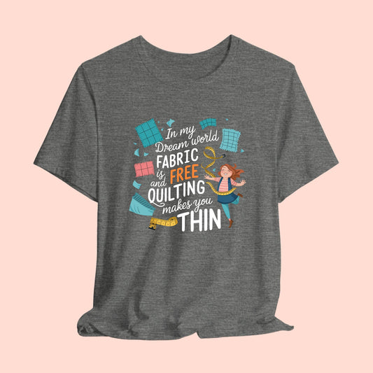Fabric is Free and Quilting Makes You Thin - Quilters Funny T-Shirt