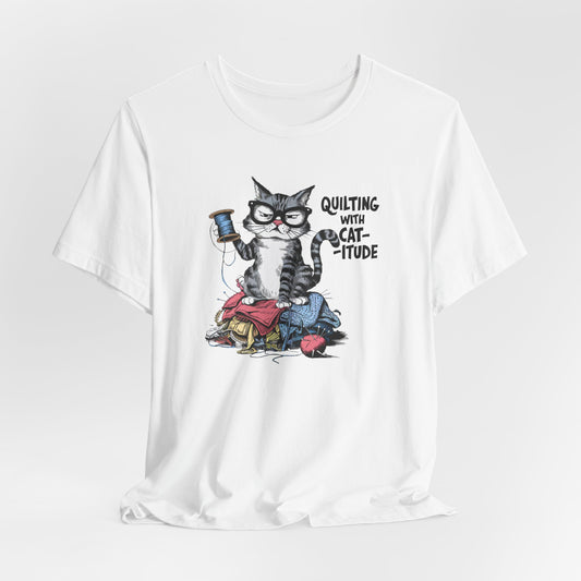 Quilting with Cat-itude Tee – Funny Quilting Cat Shirt – Comfort Fit (4X-5X)