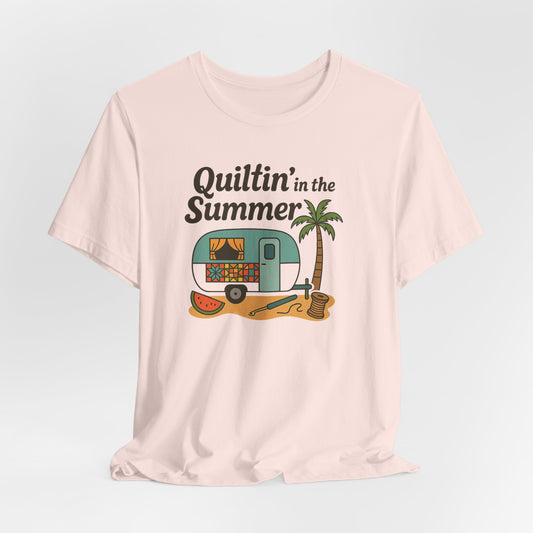 Quiltin’ in the Summer T-Shirt – Funny Quilting Camper Tee for Summer Stitchers