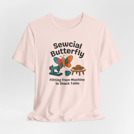 Sewcial Butterfly Quilting T-Shirt – Snack Table Hopper Tee for Quilters