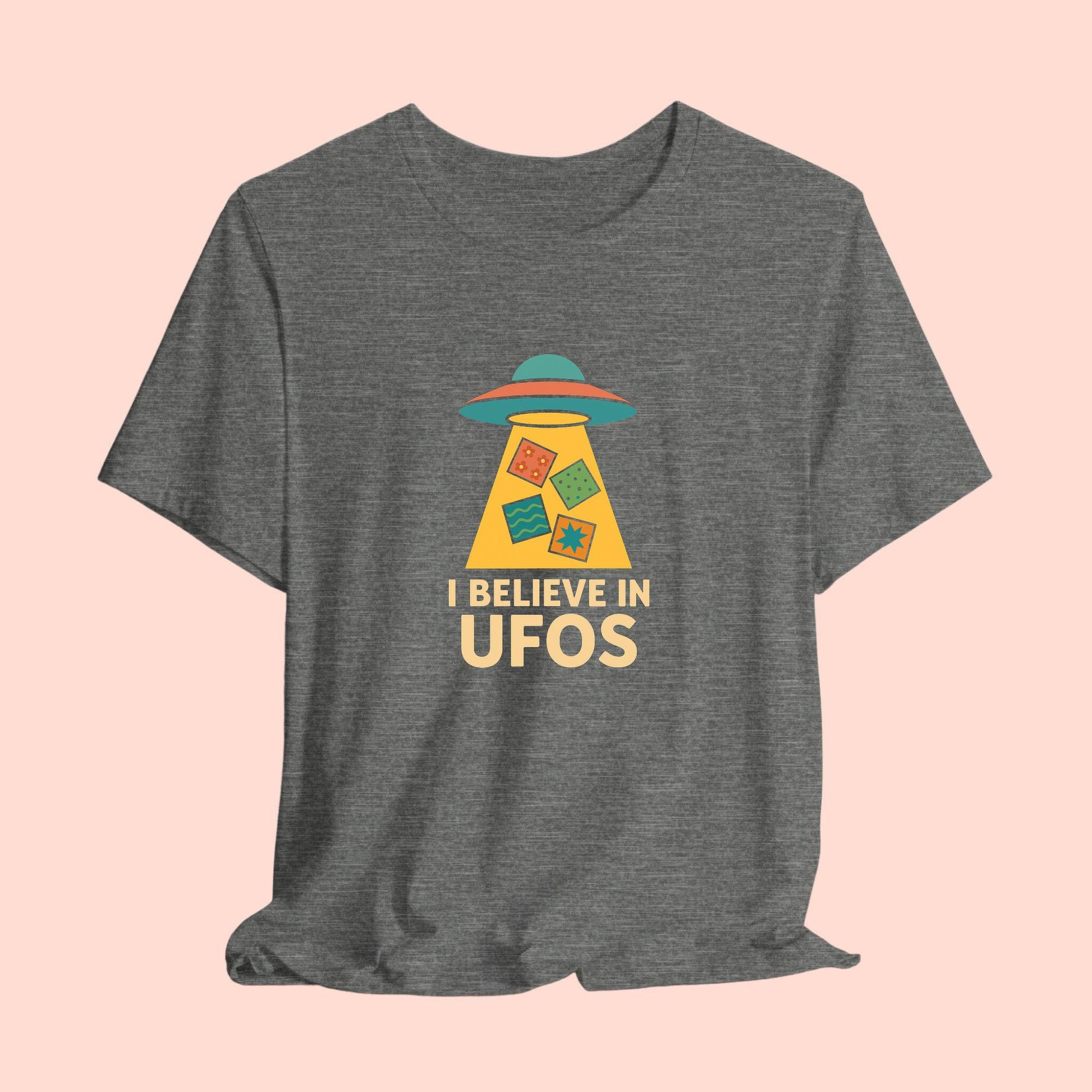 I Believe in UFOs – Funny Quilting T-Shirt for UFO-Obsessed Quilters