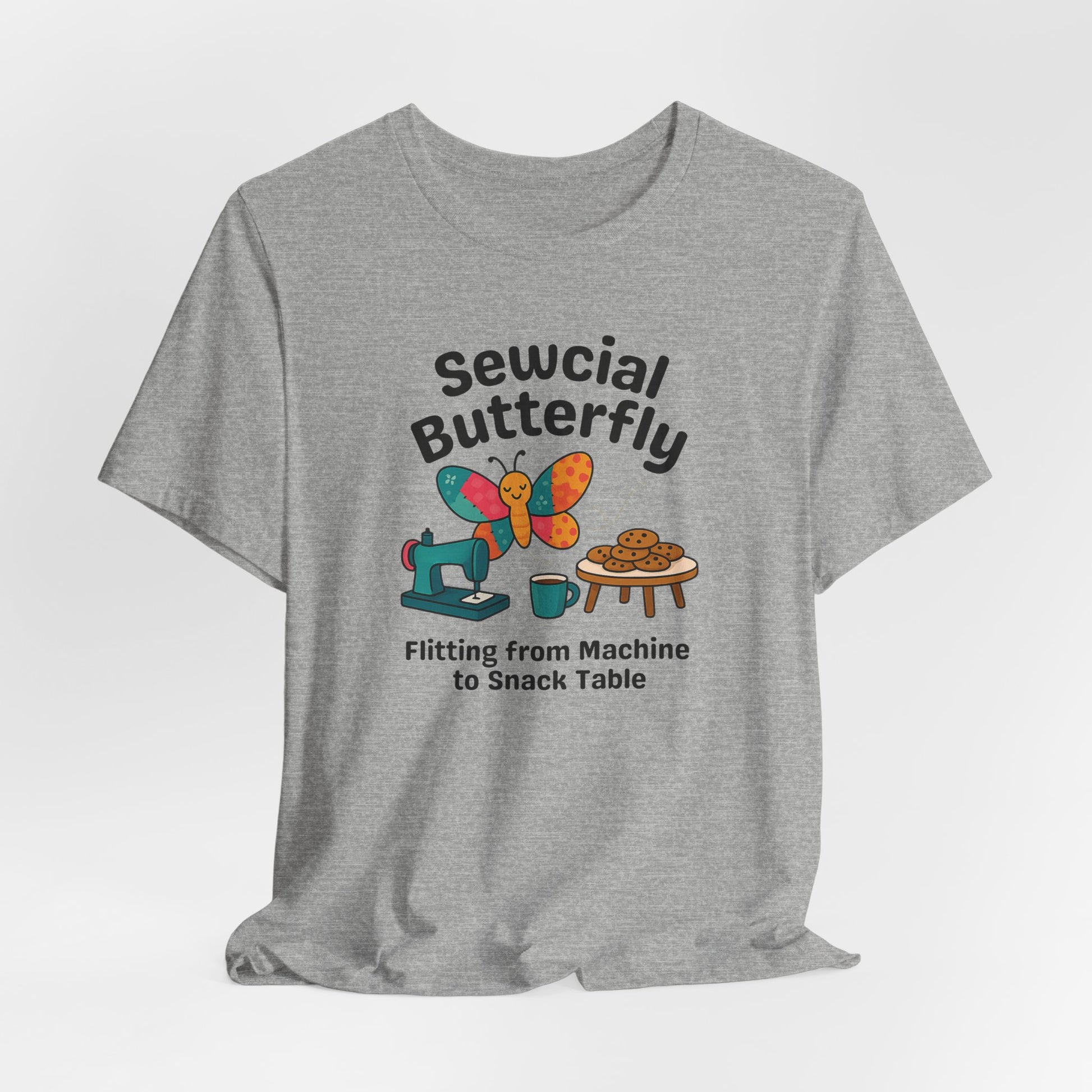 Sewcial Butterfly Quilting T-Shirt – Snack Table Hopper Tee for Quilters