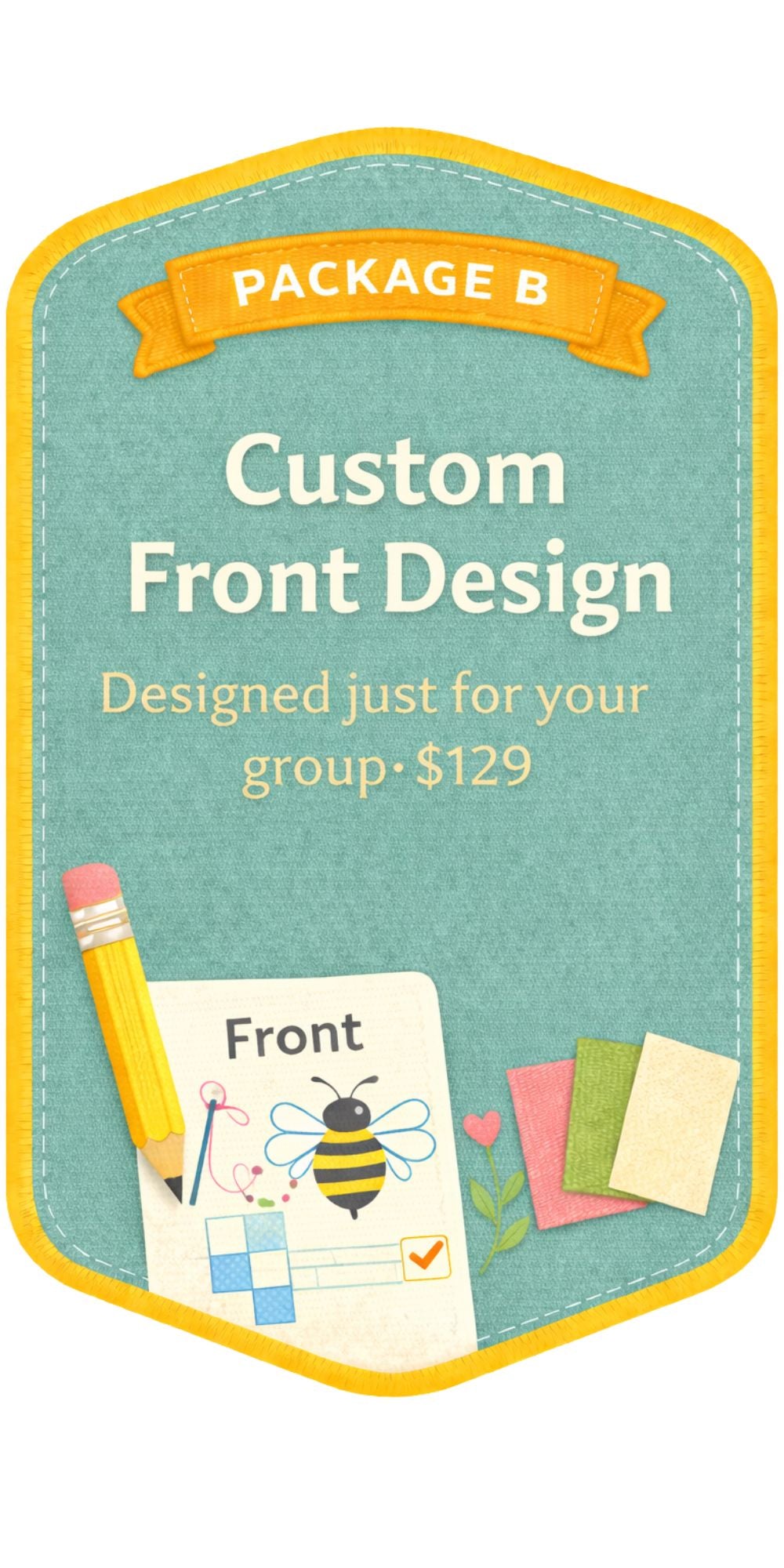 Choose from my exclusive “Quilting Bee Design Menu” (I personalize it for your group for free) — or upgrade to a fully custom design made just for you.