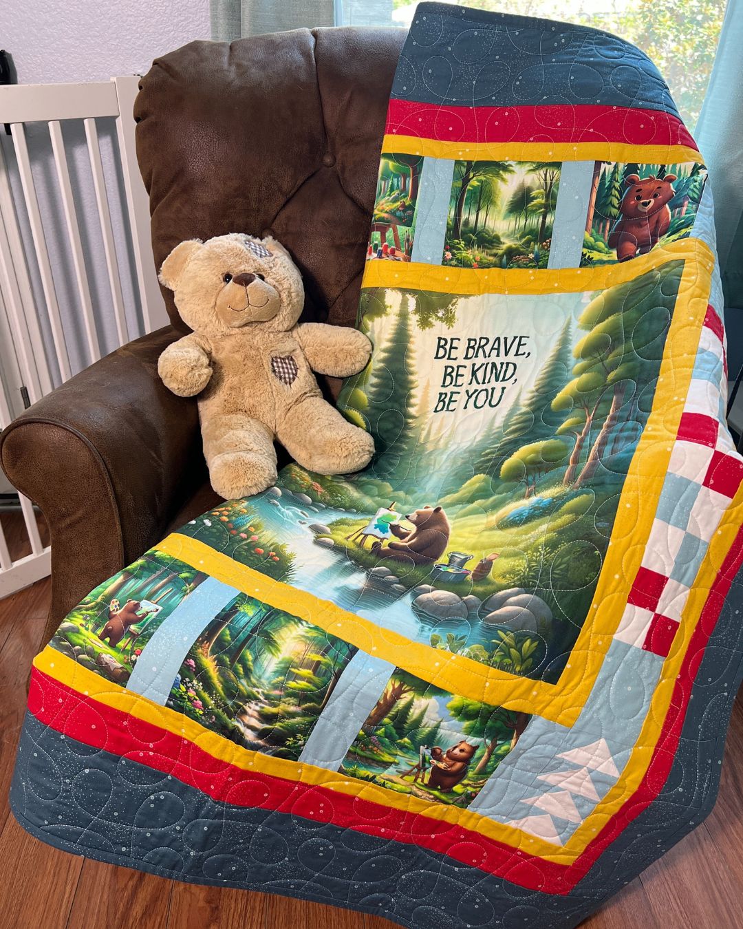 Love the Be Kind Bear but want to add your own creative spin? The Be Kind Bear Quilt Panel is ready to be the star of your next project! Whether you make a baby quilt, wall hanging, or add extra borders for a bigger quilt, this panel is the perfect starting point.
