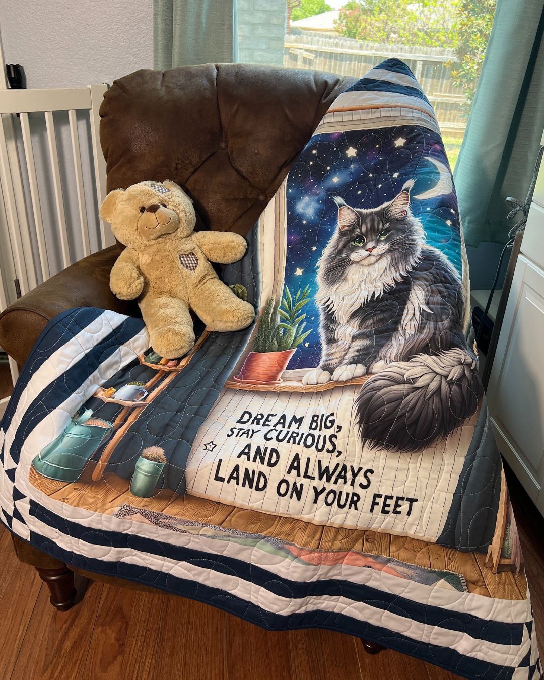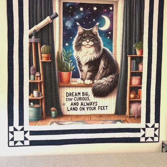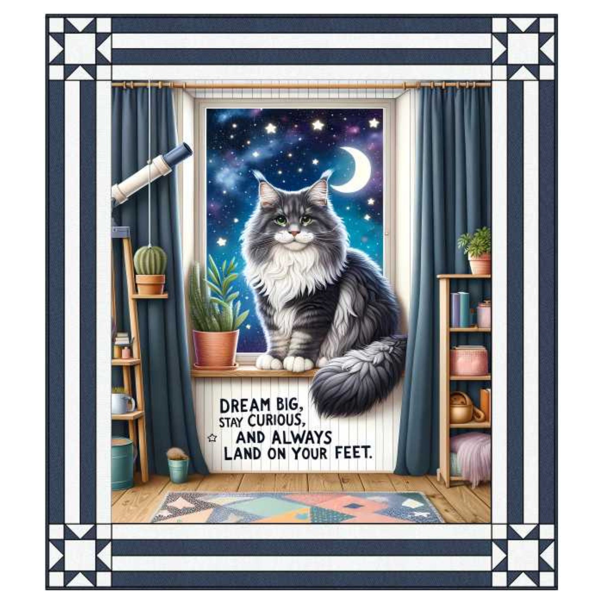 Dream Big Cat Quilt Panel – Maine Coon's Delightful Fabric Panel with Pattern