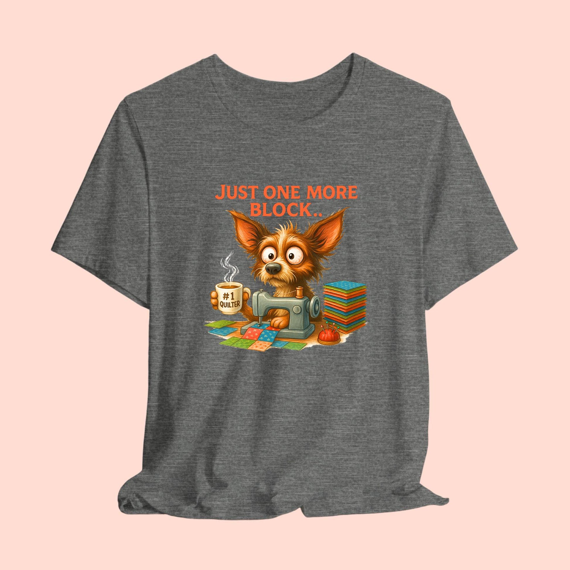 Just One More Block Quilting Dog T-Shirt | Funny Quilter Gift | Super Soft Bella+Canvas Tee