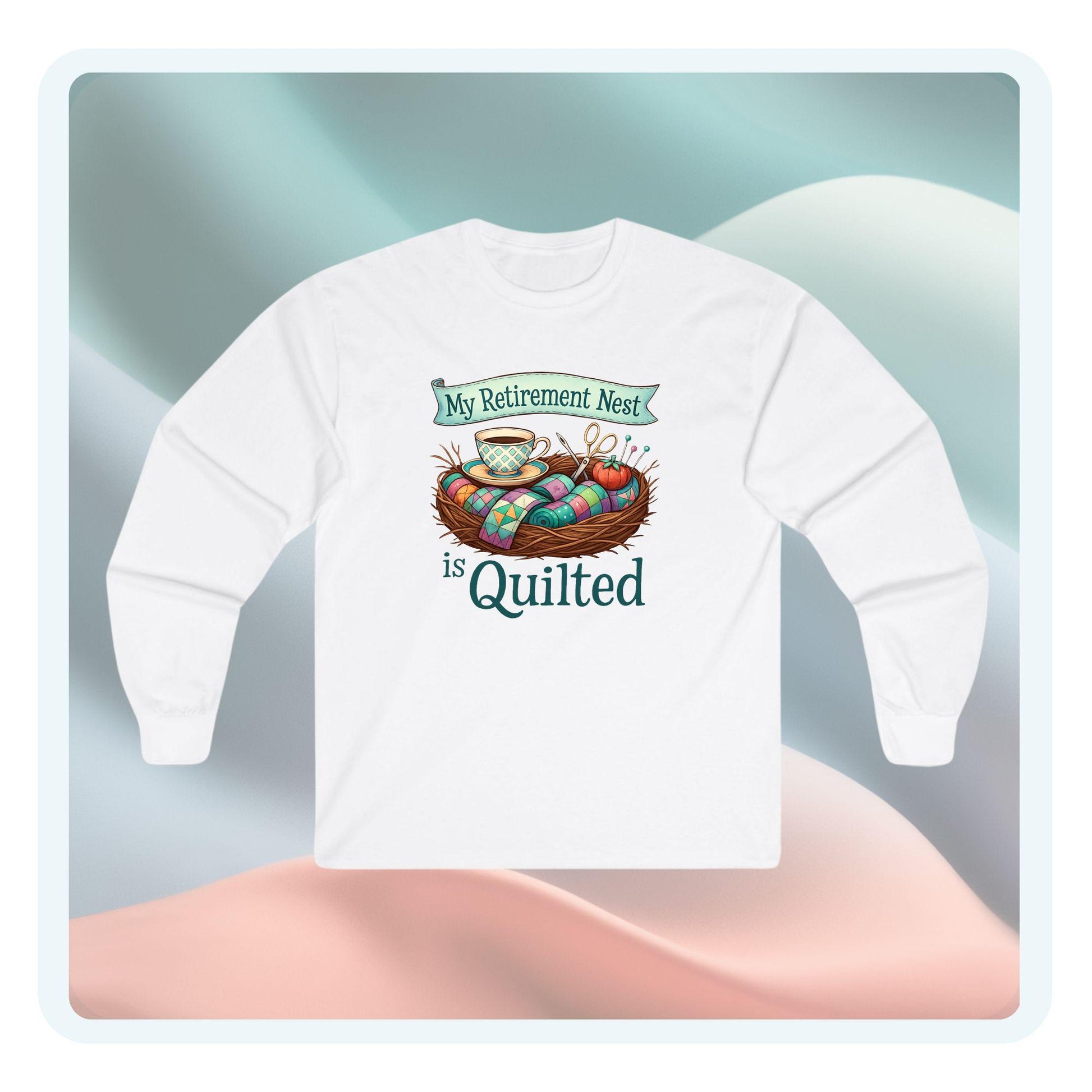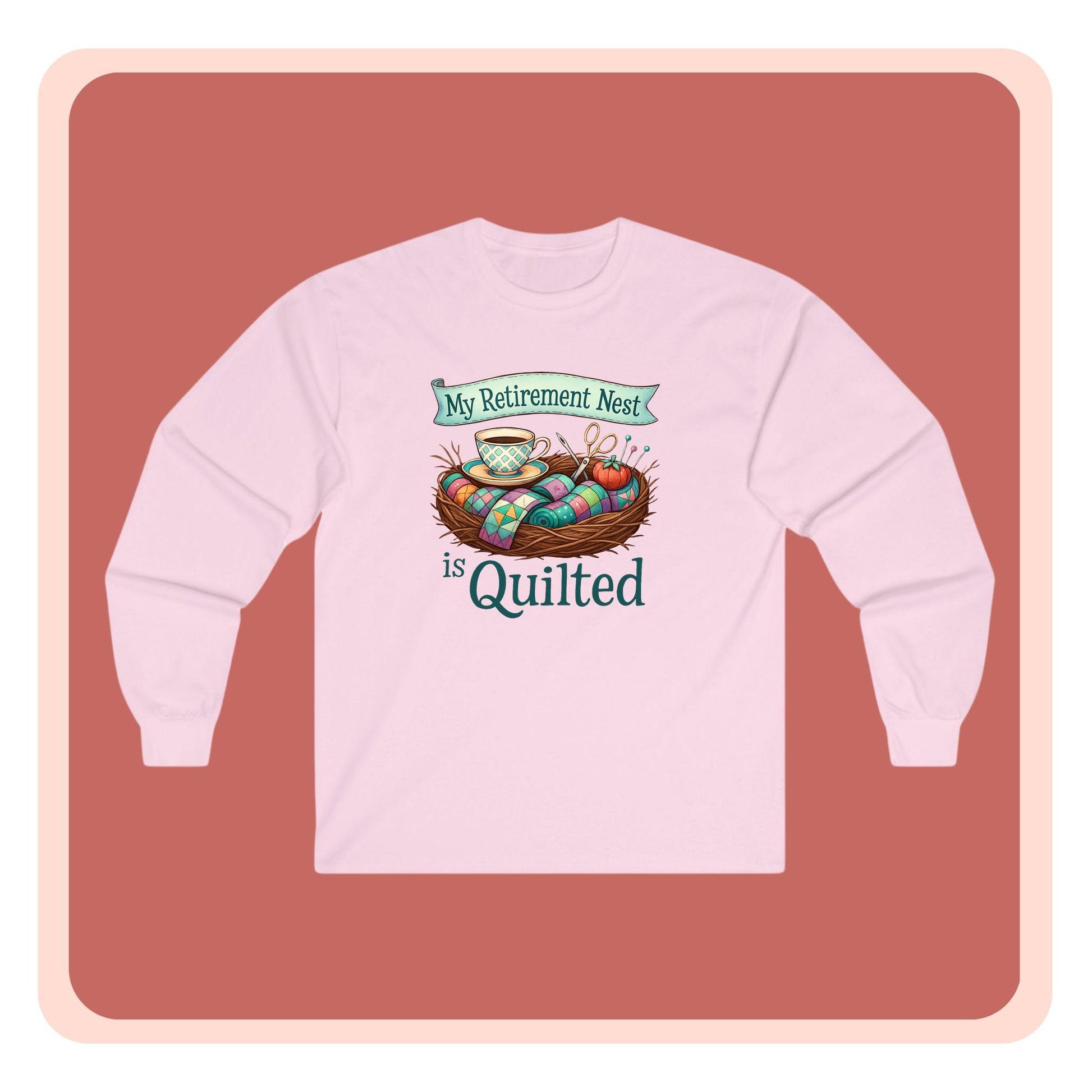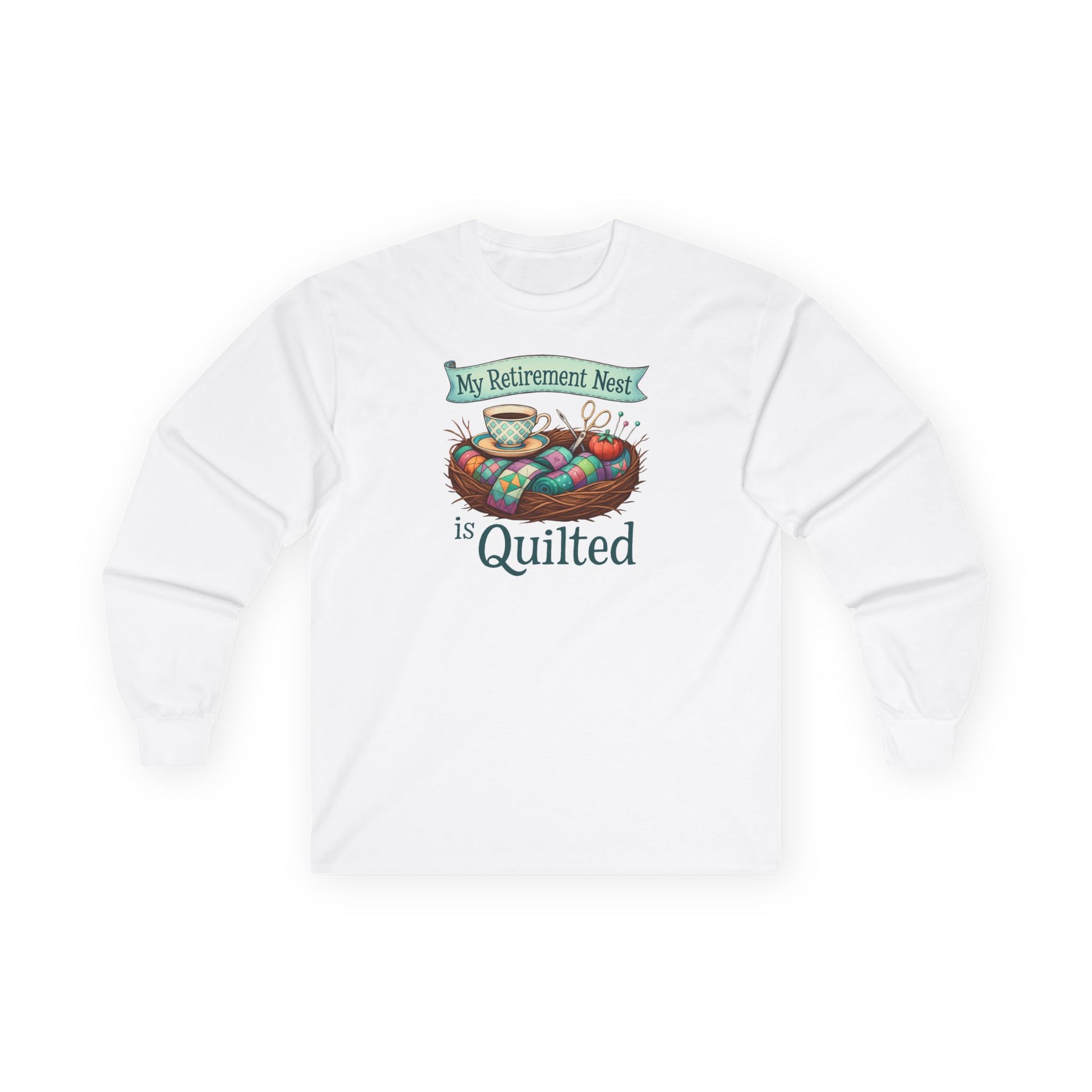 My Retirement Nest is Quilted Long Sleeve Shirt | Quilter’s Retirement Gift Tee