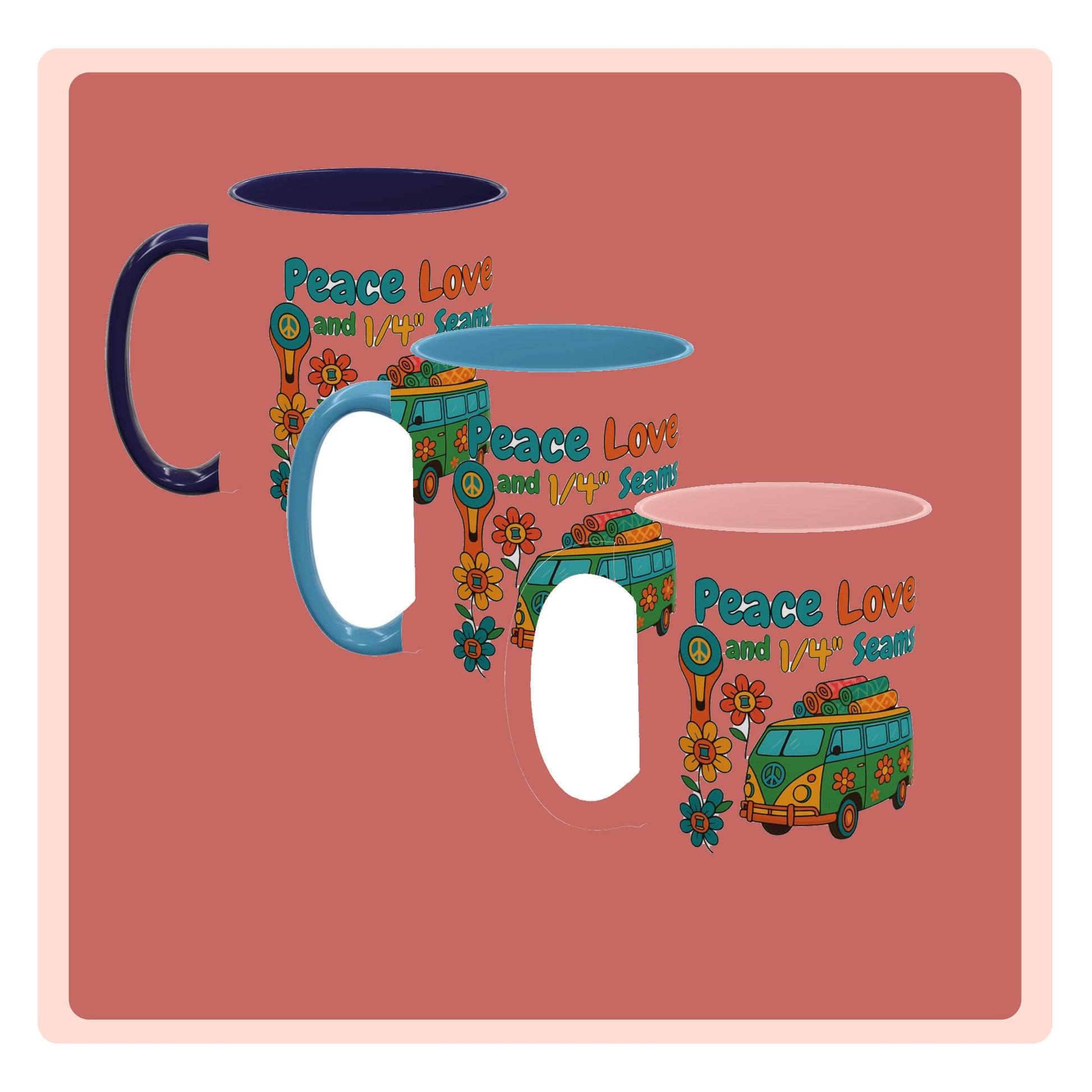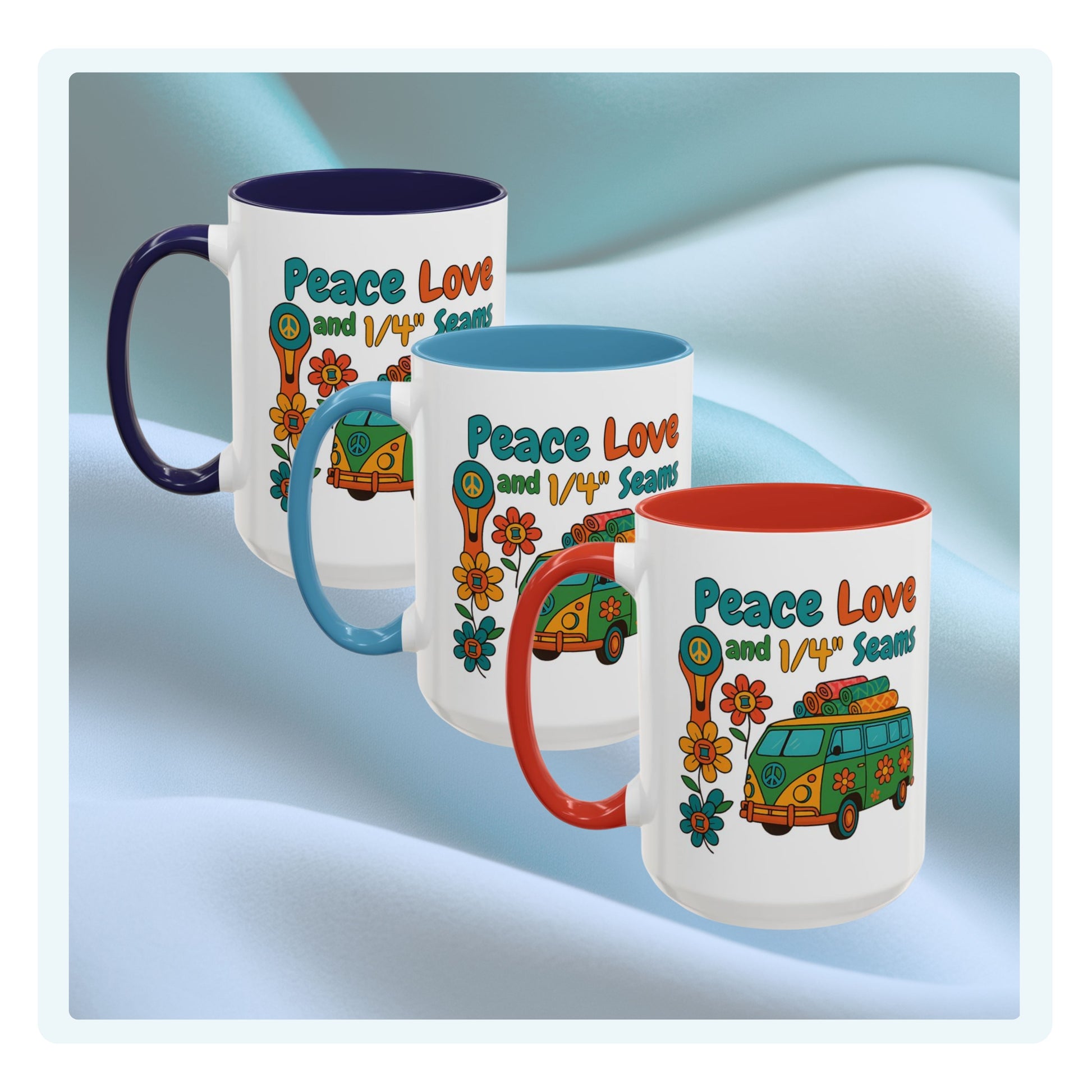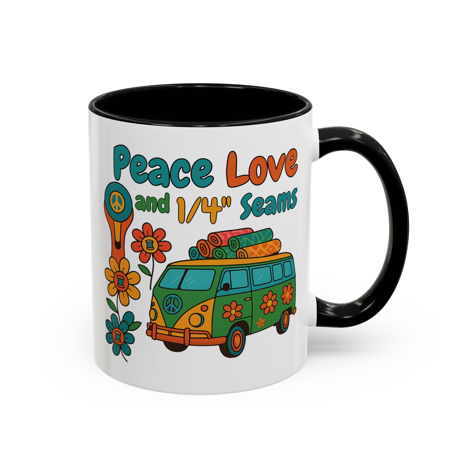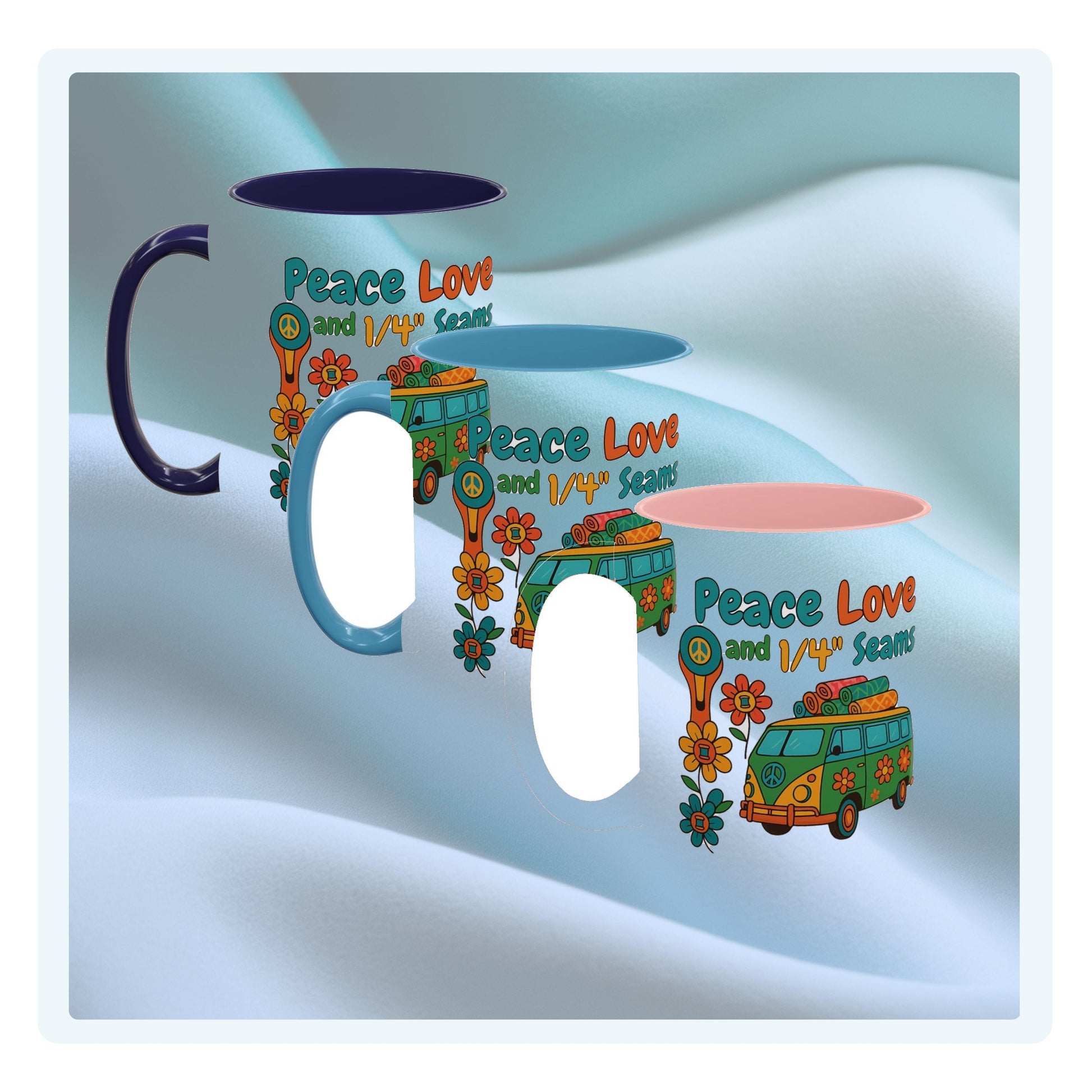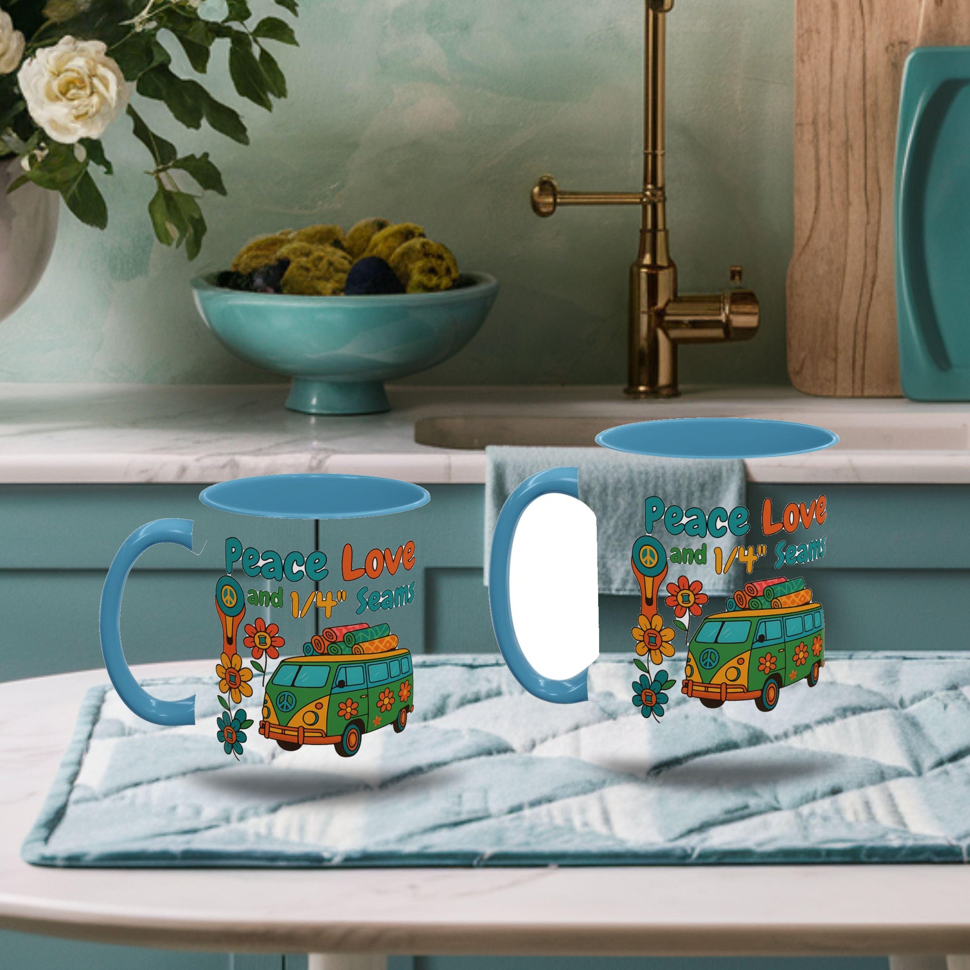 Peace Love and 1/4" Seams – Groovy Quilting Ceramic Mug for Retro Stitchers