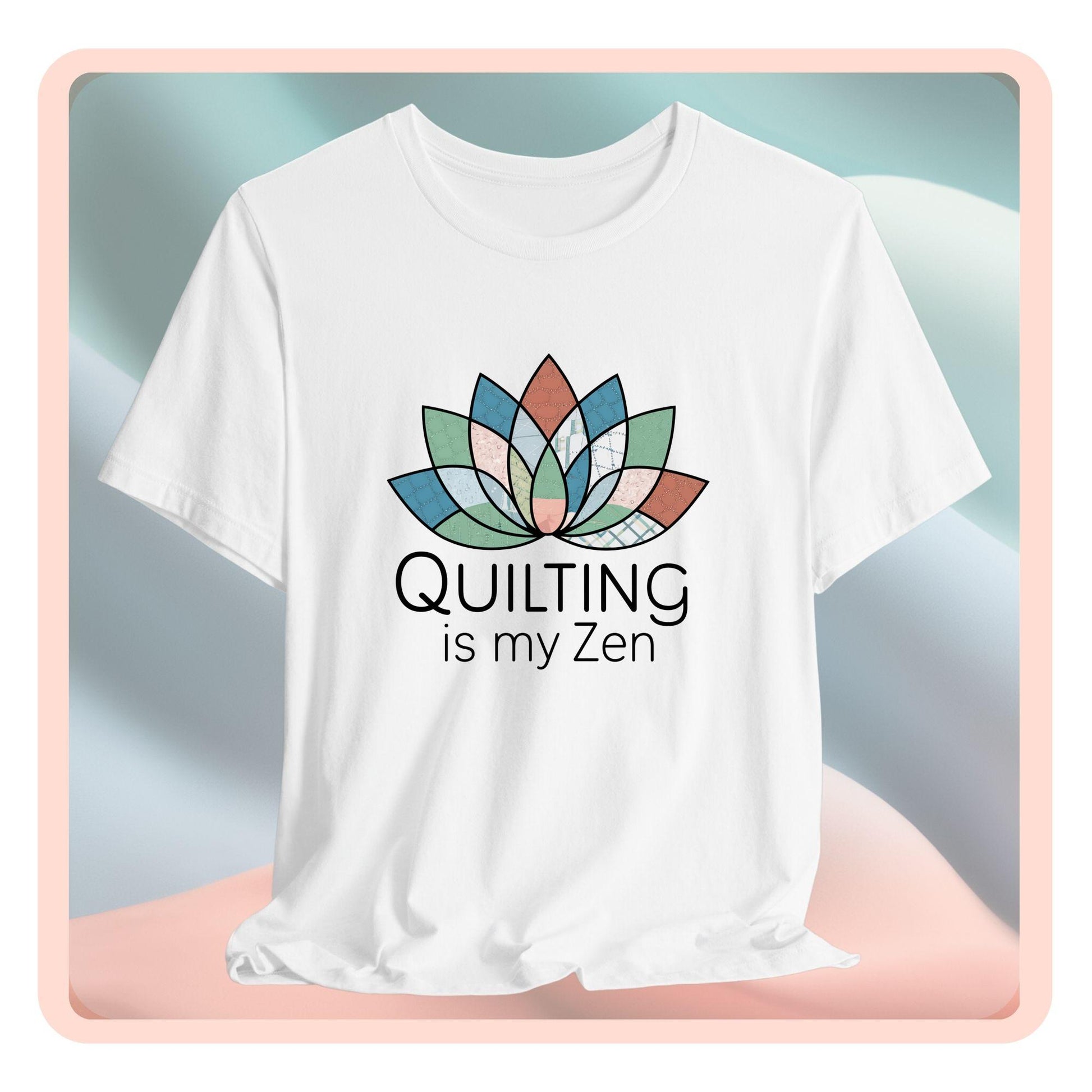 Find your quilting nirvana with our "Quilting is my Zen" t-shirt! This comfy tee showcases a beautiful lotus flower design made from quilting patterns, perfectly capturing the meditative essence of your favorite craft.