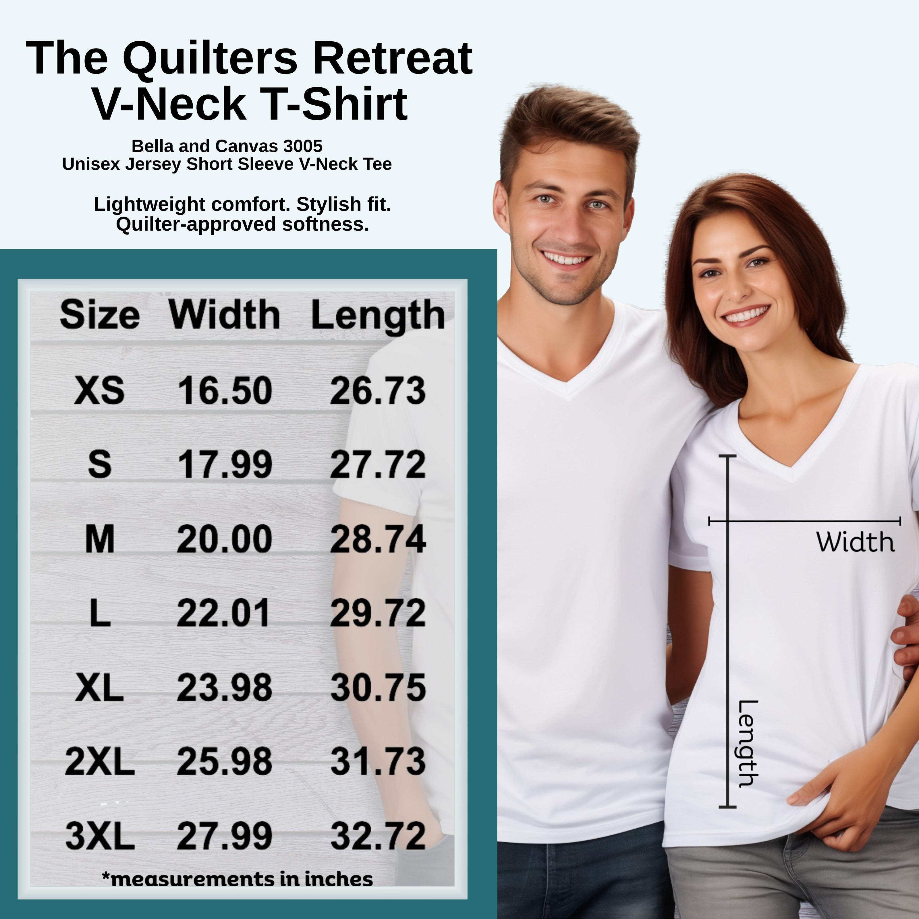 Introducing our brand-new Quilter’s Retreat V-Neck T-Shirts—the same Bella+Canvas softness you love from our crew necks, now with a flattering v-cut style. These tees are lightweight (4.2 oz), breathable, and made for comfort, whether you’re piecing quilts, heading to guild, or enjoying a casual day out.