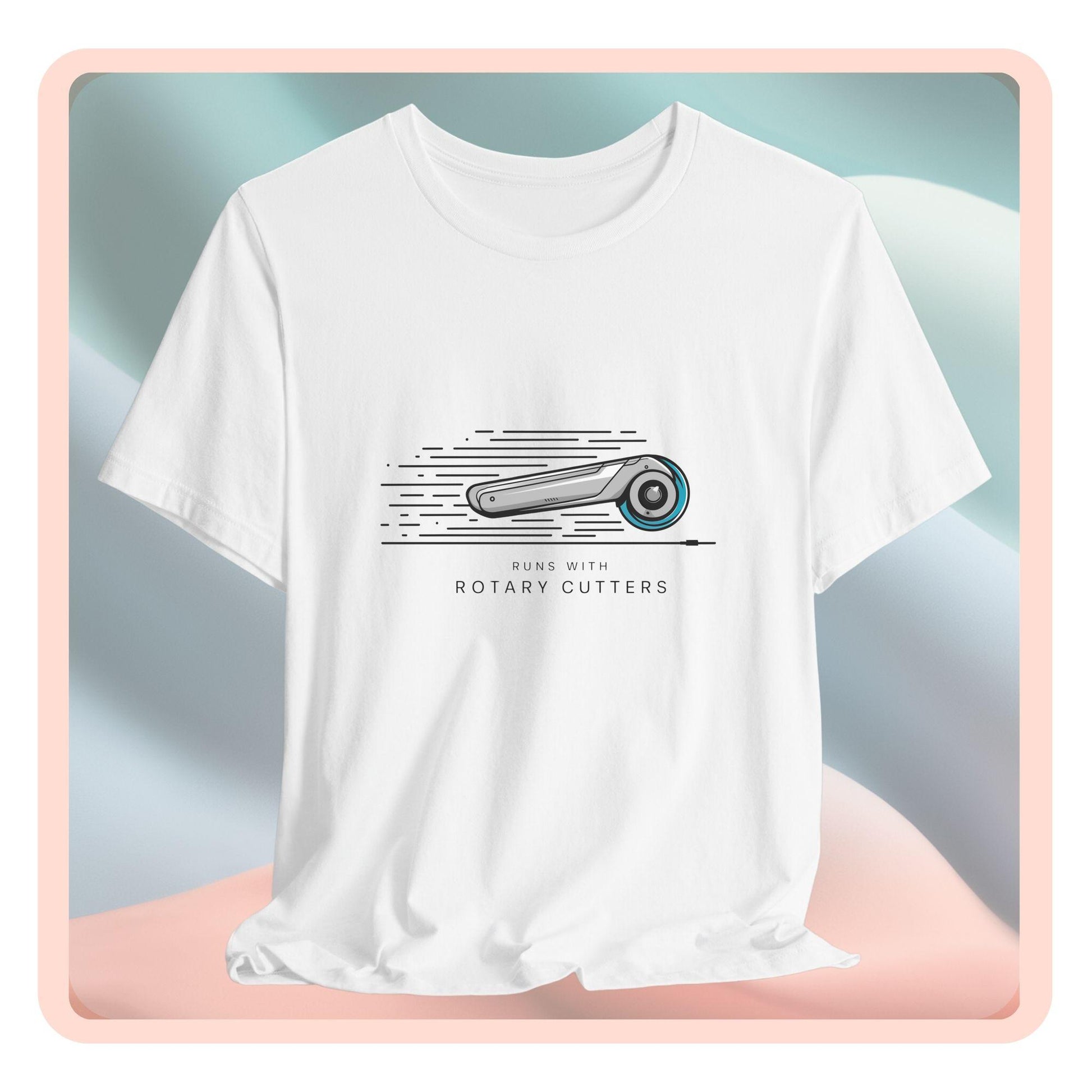 Slice through your day with our "Runs with Rotary Cutters" tee! This sleek design showcases a futuristic rotary cutter in motion, perfect for the quilter who's always racing to finish their latest project. Whether you're sprinting to the fabric store or dashing through your stash, this shirt declares your dedication to the craft.