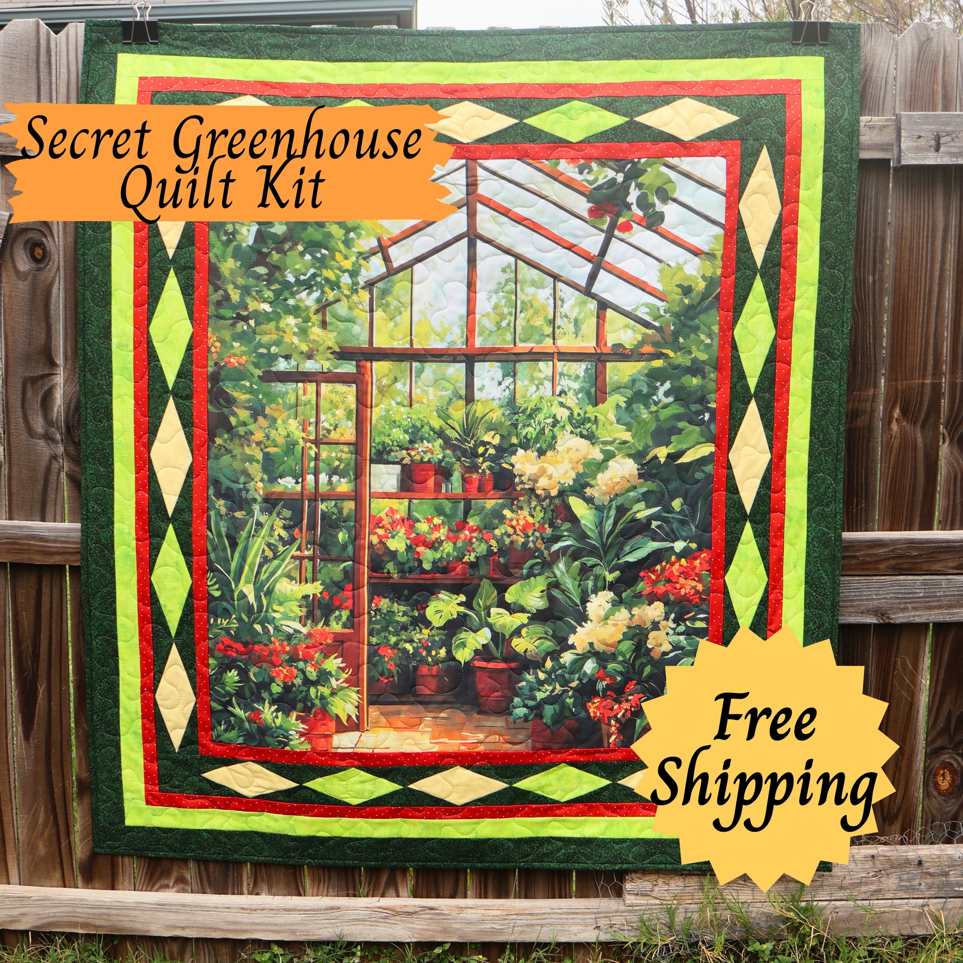 The Secret Greenhouse Quilt Kit – Includes Panel, Coordinated Fabric, Pattern & Foundation Paper Templates