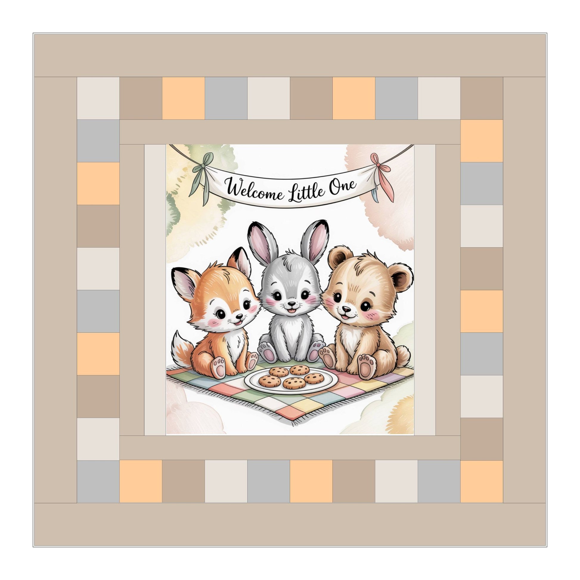 Featuring a cheerful fox, bunny, and bear beneath the phrase Welcome Little One, this darling design is perfect for baby quilts, premie quilts, nursery sewing, and heartfelt handmade gifts. The smaller panel format makes it easy to create something special without starting from a full yard of fabric, while the included pattern keeps the project simple and approachable for quilters of all experience levels.